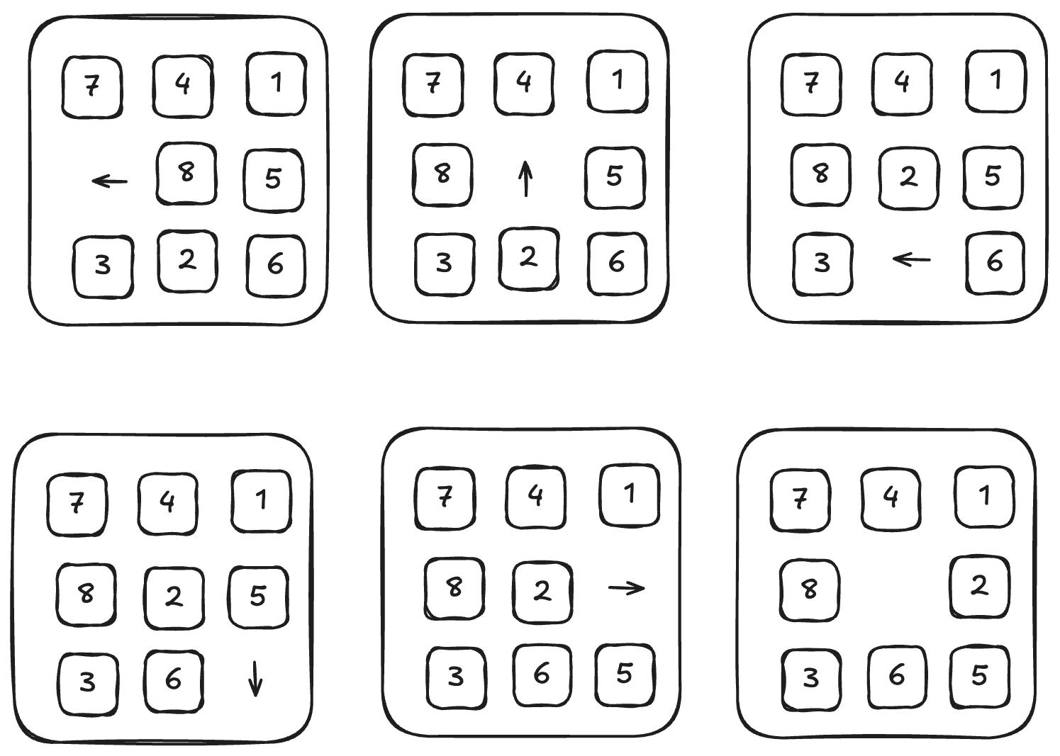 This intuitive way of thinking about the sliding tile puzzle works with any size of the sliding tile puzzle.